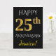 Tarjeta Negro, Falso Oro Aniversario de Bodas 25 + Nombre