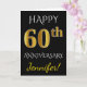 Tarjeta Negro, Falso Oro Aniversario de Bodas número 60 +