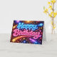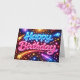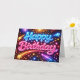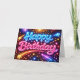 Tarjeta Neon Happy Birthday Fireworks and Stars