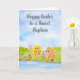 Bright spring colors and playful charm fill this watercolor Easter card, featuring a fluffy baby chick carrying a basket of colorful Easter eggs while a friendly bunny wearing a pink bowtie keeps watch nearby. Set among blooming pastel tulips, the scene captures the excitement and fresh spirit of the season. Thoughtfully created as a special Easter greeting for your nephew, this cheerful design sends warm wishes, smiles, and joyful holiday fun.