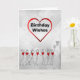 Plantilla de tarjeta de saludo de Netball con corazón de amor y figuras de palos. Personalizado feliz tarjeta de cumpleaños para jugador de netball o fan.