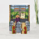 This funny new home card captures that feeling with a quietly humorous scene: an impressive residence, a proud new homeowner, and just enough protection to suggest optimism may be running slightly ahead of logistics. The humor is visual, understated, and affectionate — perfect for people who appreciate a clever smile rather than a loud punchline.