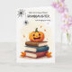 Sorprenda a su nieta esta Halloween con una tarjeta de diversión diseñada sólo para los estudiantes que están fuera de la escuela. Una alegre linterna de jack-o’ se sienta sobre una pila de libros mientras una araña amigable cae de su web, creando una desenfadada mezcla de espeluznante y adorable. Perfecto para la universidad o el internado, esta tarjeta entrega un mensaje de amor, ánimo y alegría de Halloween desde casa. Una manera cuidadosa de recordarle a su nieta que se la ha echado de menos, que la celebran y que siempre se le acerca de cerca.