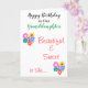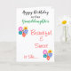 Los deseos de cumpleaños de las nietas. Personalizar para cualquiera. La nieta está escrita en escritura verde. Hermosa y dulce es que está escrita en primera línea con escritura roja. Flores de colores vivos en naranja verde amarillo rosa con fondo blanco. Deje un mensaje especial dentro, o personalice. Diseño original de obras de arte y tarjetas Verse © TamiraZDesigns