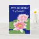 Tarjeta de cumpleaños de bonito de julio para una nieta, con dos nenúfares de agua rosada y lilos sobre un fondo azul profundo, de un diseño acuarela pintado a mano por Judy Adamson. Puede cambiar el mensaje interno si lo desea.