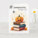 Haz que tu nieta sonríe esta Halloween con una tarjeta graciosa que es a la vez espeluznante y dulce. Una calabaza alegre se sienta en un montón de libros mientras una pequeña araña cae de su web, jugueteando atando al mensaje principal. El diseño alegre es perfecto para nietas jóvenes o mayores, de entre 12 y 14 años que disfrutan de un toque de humor de Halloween mezclado con la cortesía. Una manera encantadora de mandar risas, amor y alegría festiva mientras le muestra lo mucho que piensa de esta festividad.