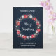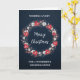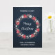 Feliz Navidad para la tarjeta de nieta con corona de nieve rústica y follaje de invierno con poinsettias.