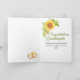 Una preciosa carta de felicitaciones por el día de la boda de la nieta con girasoles florales, follaje, anillos de oro y luces de cuerdas con un borde verde oscuro. La manera perfecta de felicitar a su novia y desearle todo lo mejor en su matrimonio. Personalizar con nombre y mensaje interno.