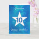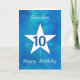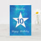 Han llegado dos dígitos, ¡y esta tarjeta de cumpleaños es tan asombrosa como tu nieto de 10 años! La acuarela en tonos azules, azules y verdes crea un ambiente fresco y refrescante. La audaz estrella blanca del centro brilla con líneas radiantes, reflejando el emocionante y atrevido espíritu de un niño de 10 años. ¡Una gran manera de celebrar este cumpleaños histórico!