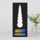 Este tonto diseño de tarjetas de felicitación de Navidades presenta el mensaje "¡FELIZ NAVIDAD!" que tiene letras con un patrón de gradiente de espectro arcoiris. En la parte delantera también se ve una representación de un muñeco de nieve muy alto. La parte posterior muestra un mensaje de personalizable.