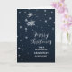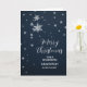 Feliz Navidad para su nieto y su tarjeta familiar con moderno patrón de copos de nieve en un cielo azul marino.