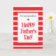 Mucho rojo en esta tarjeta moderna del Día del Padre para el nieto. Tiene un fondo rojo a rayas en la parte delantera, junto con un pequeño corazón rojo. En el interior de esta moderna tarjeta del Día del Padre Feliz se lee un mensaje del Día del Padre, que puedes personalizar fácilmente si quieres. La parte trasera está decorada con rayas y el corazón rojo, donde podrás personalizar el año. Esto le haría un gran favor.