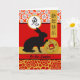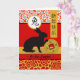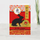 Para nuestro nieto, Feliz Año Nuevo Chino del Conejo, tarjeta de saludo de papel con una silueta de conejo sosteniendo una moneda de buena fortuna Feng Shui. Los elementos florales están en la parte superior e inferior de la tarjeta. Cartel de tono dorado colgando con un mensaje de año nuevo escrito en chino. También se ve un símbolo zodiaco para el conejo. Arte, imagen y verso copyright © Shoaff Ballanger Studios, 2022.