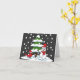 Tarjeta Nieve cayendo sobre cardenal, muñeco de nieve y pi