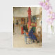 Tarjeta Niña antigua en torno de hilar