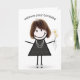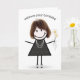 Tarjeta Niña con figura de palo de cumpleaños con margarit
