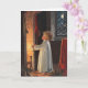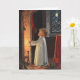 Tarjeta de vacaciones de arte fino de época producida originalmente a principios del siglo XX. La tarjeta muestra a una niña linda cuando se calienta las manos por la noche con una chimenea. En el exterior hay una luna llena y las medias tradicionales están colgadas del fuego. Esta impresión clásica reproducida se restauró digitalmente para reducir los puntos de edad y mejorar el color para lograr una calidad de impresión óptima. Mantén el texto interno o personalizas según tus necesidades.