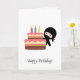 Tarjeta Ninja minúsculo detrás de la torta de cumpleaños