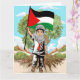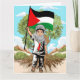 Tarjeta Niño con bandera palestina de Keffiyeh y olivo