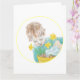 Niño Pequeño Con Narcisos - ilustración de libro para un libro ilustrado 'Heralds of spring' escrito e ilustrado por Julia Doria. El niño está regando narcisos y bulbos en flor en una maceta.