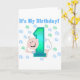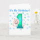 Un bebé en un pañal mira desde detrás de un gran número uno y el texto dice "Es mi cumpleaños" en camisetas de primer cumpleaños, trajes para el cuerpo, botones, imanes y más.