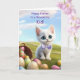 Tarjeta Niño feliz Pascua con gatito blanco oscuro