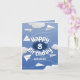 Esta caprichosa tarjeta de cumpleaños para un niño o un chica presenta varios aviones de papel blanco plegado ilustrados contra un cielo azul con nubes esponjosas rodeando el mensaje "Feliz Cumpleaños" - personalizar la edad y nombre del niño en el frente y el mensaje en el interior - de katz_d_zynes