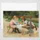 Este diseño presenta una pintura del artista francés Victor Gabriel Gilbert (1847–1933). Muestra a niños disfrutando de un picnic en un parque de París. Hay dos niñas y un niño. Los niños están sentados a ambos lados de un banco; una niña está acostada sobre él. Tienen un mantel y están comiendo cerezas y pastel. Incluso tienen una botella de aceite de oliva. Hay flores creciendo en el parque detrás de ellos. Es una escena dulce de niños disfrutando y actuando como adultos.