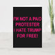 Tarjeta No soy un manifestante pagado: odio a Trump gratis
