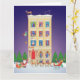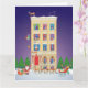 Envía tus felicitaciones navideñas con esta animada imagen contemporánea del hogar de Santa. Él se prepara para su viaje de Navidad asistido por renos, elfos y un gato.