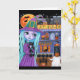 Tarjeta Noche de Halloween Gato Negro Bruja Linda Casa Emb
