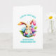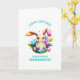 Celebra las vacaciones de Pascua enviando a tu nieta favorita [o personalizar] nuestra tarjeta "¡Saludos de Pascua!" Una hermosa representación acuarela del conejito de Pascua sentado y pintando huevos de Pascua en medio de una pila de huevos verde azulados, azules, rosas y morados. Él tiene un disquete, orejas pintadas también.