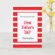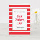 Esta es una tarjeta roja personalizada del primer día del padre para su yerno, que puede ser personalizada en el frente con su nombre. En el interior de esta moderna tarjeta del Día del Primer Padre se lee un mensaje dulce, que se puede personalizar fácilmente si se desea. La parte trasera cuenta con un diseño a rayas que podrás personalizar con el año. Esto haría un maravilloso recuerdo para su primer Día de los Padres.