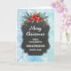 Feliz Navidad para tarjeta de novia con un patrón rústico de pizarra y follaje de invierno con poinsettias.