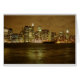 El horizonte de la ciudad de Nueva York ilumina las nubes en una noche nublada de diciembre, reflejando en el giratorio East River.
