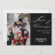 Con este diseño lujoso, puedes enviar saludos sinceros y cálidos deseos a seres queridos que están cerca y lejos. Esta tarjeta de vacaciones moderna tiene escritura blanca elegante sobre un fondo negro, y dice: "Amor y bendiciones de nuestros corazones a los tuyos". En la parte delantera, puedes personalizarla fácilmente con una fotografía familiar, el nombre de la familia y el año actual. Exclusivo de esta tarjeta es la superposición de texto sobre texto con el nombre de la familia y el año que da un efecto de profundidad único. La parte trasera de la tarjeta está en blanco y es del mismo color que la parte delantera. Hay muchas formas de elegir entre colores. Visita la creciente Colección en esta página del producto, o la página de inicio, para ver más diseños.
