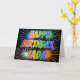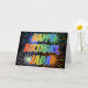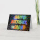 Este diseño de tarjeta de felicitación de cumpleaños multicolor y divertido presenta el mensaje "HAPPY BIRTHDAY", y el nombre común "JADA" con las letras que tienen un patrón de colorido gradiente de espectro de arcoíris. El fondo de la parte delantera también presenta un patrón inspirado en fuegos artificiales coloridos que estallan. El interior presenta un mensaje de felicitación personalizable, o quizás podría estar en blanco si se desea escribir un mensaje a mano en su lugar. Una tarjeta de felicitación de cumpleaños como esta podría ser divertida para regalar a alguien llamada Jada en su cumpleaños. [~Z0000350]