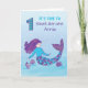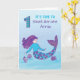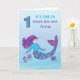 Para un chica divertido que celebrará su primer cumpleaños es esta tarjeta que muestra una hermosa sirena en la portada. Esta tarjeta también viene con un frente de personalizable donde puedes personalizar la tarjeta con el nombre del celebrante.