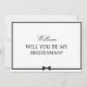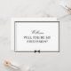 Pedir a tu novia que se una a tu fiesta de bodas nunca ha sido más elegante. Nuestra minimalista tarjeta de presentación de novios con temática de bowtie es perfecta para aquellos que aprecian el diseño clásico con un toque moderno. Con una nítida paleta de colores en blanco y negro y un sofisticado detalle de bowtie, esta carta aporta una elegancia intemporal a su propuesta de fiesta de bodas. Es ideal para la novia que busca mantener las cosas simples pero significativas. Personalizar los nombres para hacer su momento especial aún más personal. Ya sea que esté planeando un evento formal o algo relajado, esta tarjeta se adapta a cada ocasión. A su novia le encantará el enfoque reflexivo y a la medida.