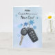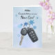 Felicita a alguien especial con una tarjeta de auto nueva personalizada con su nombre. Este diseño de temática invernal muestra las acuarelas acentuadas con nevadas azules, que simbolizan hitos emocionantes y nuevos inicios en la temporada de nieve. Perfecto para personalizar para celebrar un primer vehículo, un regalo de coche de vacaciones o cualquier viaje nuevo en invierno.
