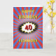 El fondo de esta llamativa tarjeta de cumpleaños es una explosión en rojo profundo y azul, con un arrebato central de borde amarillo. El diseño presenta un estilo retro de historieta vintage con colores e imágenes brillantes y nítidos. Editar el saludo de Cumpleaños Feliz, editar el número, cambiar el nombre y personalizar el mensaje también dentro (o usar el predeterminado "40 años? No lo creo. ¡Exijo un recuento!")