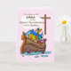 El Arca de Noé en la tarjeta de bautismo de un chica rosado es tan preciosa. Los animales miran desde el Arca de Noé, viendo la cruz a través de las nubes. Dulce tarjeta para darle a una chica mientras celebra el segundo aniversario de su bautismo. Puede personalizar el nombre de ese chica especial en esta tarjeta.