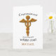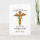 Ganarse el abrigo blanco es un punto muy especial e importante en la vida del estudiante en su camino a completar su educación. ¡Esta tarjeta está totalmente en personalizable con el nombre y la escuela! El símbolo médico tiene un aspecto 3D con el aspecto de oro antiguo del símbolo. Tarjeta perfecta para enviar a alguien que se ha ganado su abrigo blanco.