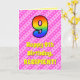 La parte delantera de este festivo y feliz diseño de la tarjeta de felicitación temática de 9 años presenta un gran número "9" con un colorido patrón de gradiente inspirado en el espectro del arcoiris. También incluye el mensaje "Feliz noveno cumpleaños", seguido de un nombre de destinatario personalizado. El fondo de la parte delantera está decorado con rayas rosa claro y rosa oscuro que contienen formas cariñosas de corazón rosado. El interior presenta un mensaje de bienvenida de cumpleaños personalizado, o tal vez podría ser borrado y dejado en blanco si se va a escribir un mensaje a mano. Una tarjeta de cumpleaños personalizada como esta podría ser una manera divertida de reconocer el noveno cumpleaños de alguien. [~Z0000416]