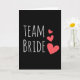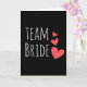 Impresionante diseño con la cita "Novia en equipo" y tres corazones rojos. Una idea estupenda y divertida para una soltera o para la fiesta de bodas.