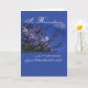 Una carta sincera con hermosas flores en un fondo azul. Enviar esto a un amigo o pariente, en recuerdo del primer aniversario de la muerte de una novia. Traiga su profunda solidaridad para ayudar a la recuperación del dolor.