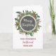 Feliz Navidad para tarjeta de novia en follaje de color agua rústico y patrón de pizarra de campo.