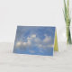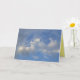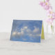 Una tarjeta de felicitación doblada con una imagen de nubes y cielo sobre ella, color amarillo y blanco dentro.