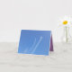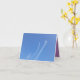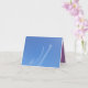 Una tarjeta de felicitación doblada con una imagen de nubes y cielo en ella, color púrpura/blanco en el interior.