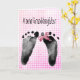 Tarjeta Nuevas huellas de nieta en Pink Gingham